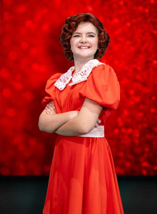 A vibrant group of young performers brings Annie’s world to life with lively humor and heartfelt moments. The orphan ensemble features Leilah Mendivil as Pepper, Isla Gurnon as Duffy, Brenda Meza as July, Radmira Koltsova as Tessie, Bogdana Koltsova as Mae, Brooklyn Park as Kate, and Kaia Petrilla as Molly. The ensemble adds rich texture to the show with appearances by Neil Badham, Alan Berry, Lois Bondurich, Donovan Bricker, Danny Hargreaves, Adam Hieter, Stevie Gold, Thelma Irvine, Justin Marionowits, Marvin Rea, Steve Shane, and Sanai Wright.